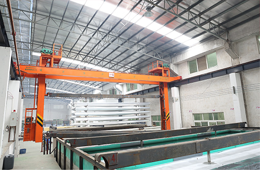 公司主要生產設備包含鋁型材擠壓生產線10套,立式粉末噴涂線2套,臥式粉末噴涂生產線1套,臥式氧化電泳生產線1套,真空木紋生產線4套,及相關配套生產設備10多套,其中進口先進設備2套,國內技術領先設備20多套,年生產各型鋁材可超5萬噸...